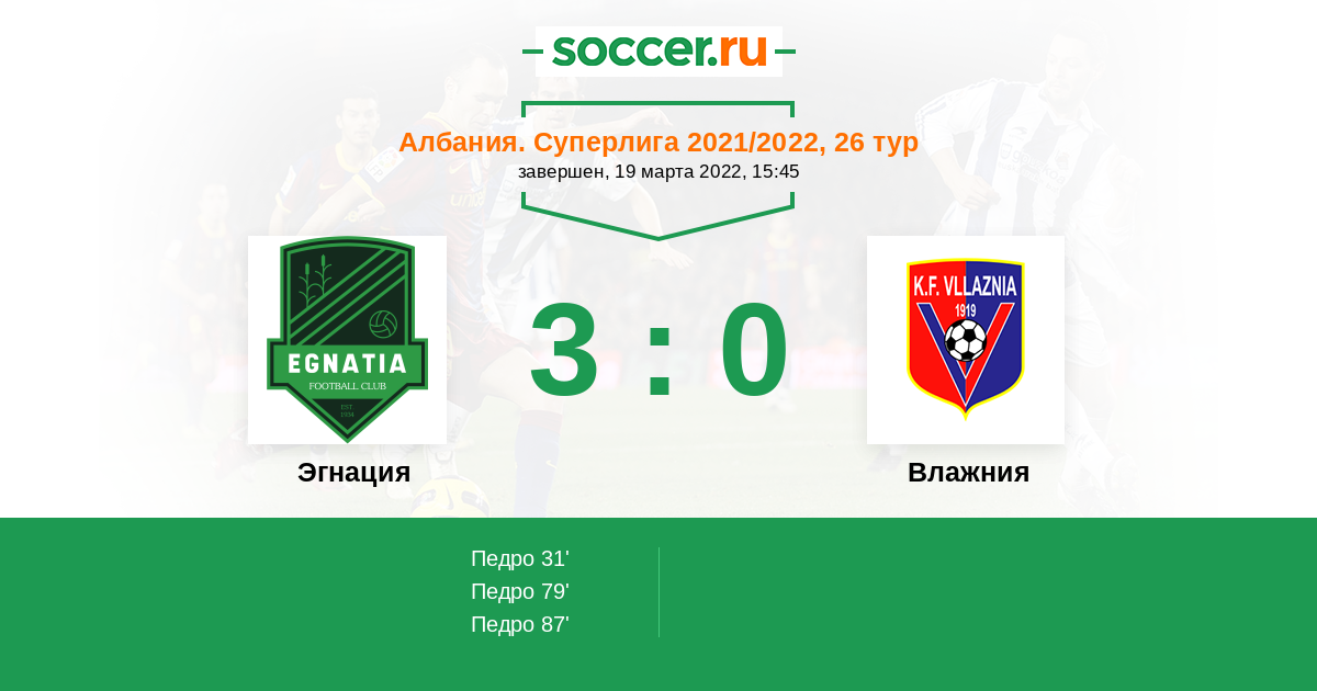 Протокол матча Эгнация против Влажния