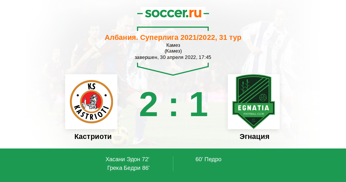 Протокол матча Кастриоти против Эгнация