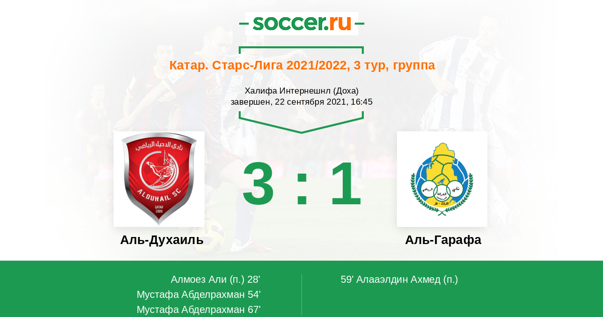 Протокол матча Аль-Духаиль против Аль-Гарафа