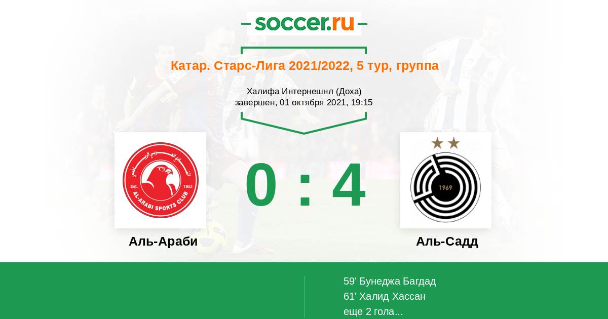 Протокол матча Аль-Араби против Аль-Садд