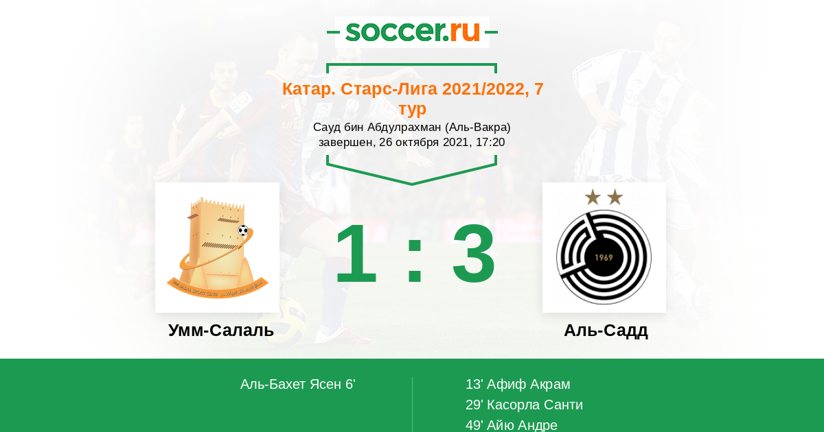 29' (1:2) Касорла Санти (19) (Афиф Акрам (15))