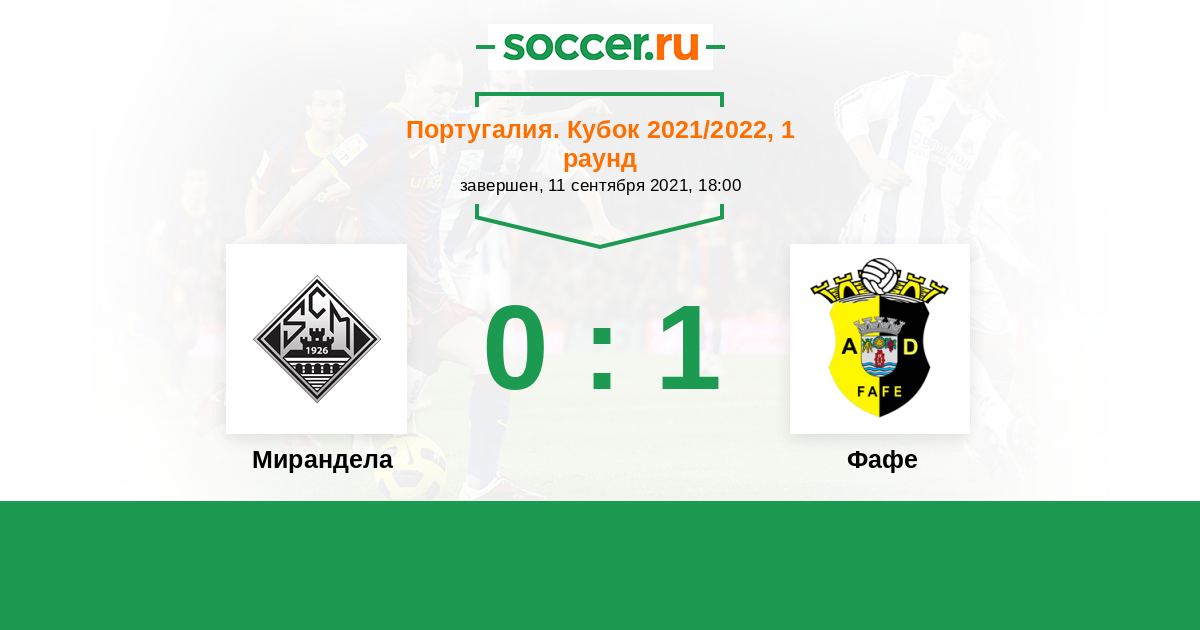 Португалия. Кубок 11.09.2021 Мирандела Логотип футбольный клуб Мирандела 0:1 Логотип футбольный клуб Фафе Фафе
