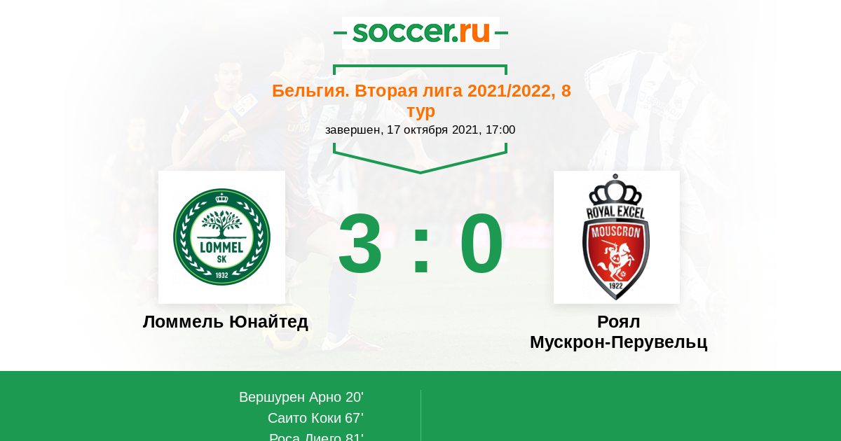 Протокол матча Ломмель Юнайтед против Роял Мускрон-Перувельц