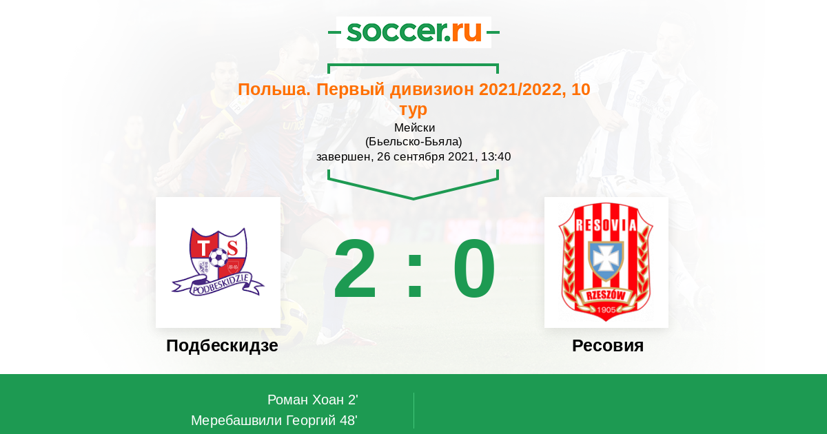 Протокол матча Подбескидзе против Ресовия