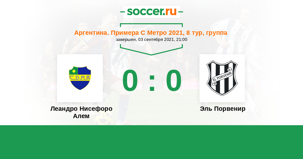 Аргентина. Примера С Метро 04.09.2022 Эль Порвенир Логотип футбольный клуб Эль Порвенир (Буэнос-Айрес) 0:2 Логотип футбольный клуб Леандро Нисефоро Алем (Буэнос-Айрес) Леандро Нисефоро Алем