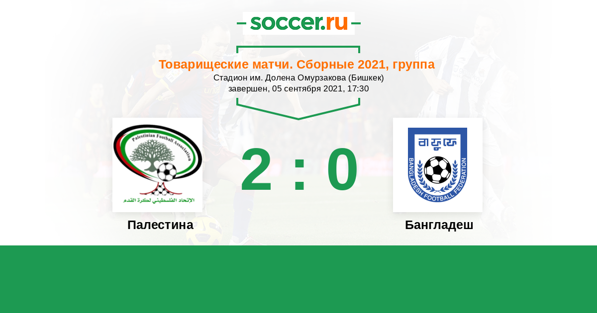 Отбор ЧМ. Азия 21.03.2024 Палестина Логотип Палестина 5:0 Логотип Бангладеш Бангладеш