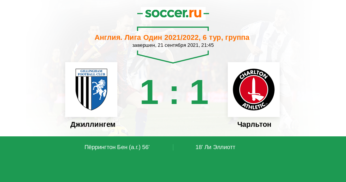 Протокол матча Джиллингем против Чарльтон