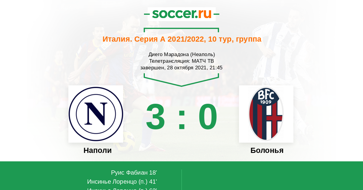 Протокол матча Наполи против Болонья