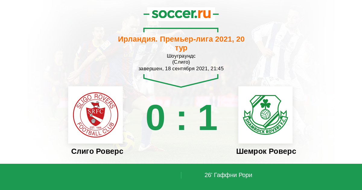 Протокол матча Слиго Роверс против Шемрок Роверс