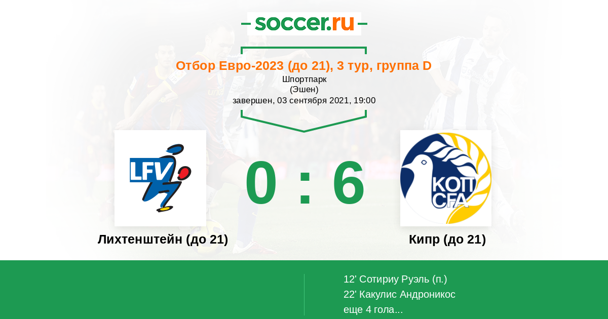 Протокол матча Лихтенштейн (до 21) против Кипр (до 21)