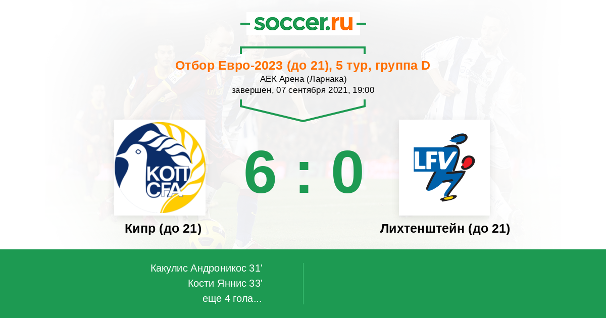 Протокол матча Кипр (до 21) против Лихтенштейн (до 21)