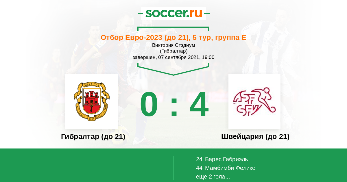 Протокол матча Гибралтар (до 21) против Швейцария (до 21)