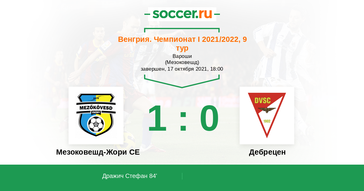 Протокол матча Мезоковешд-Жори СЕ против Дебрецен