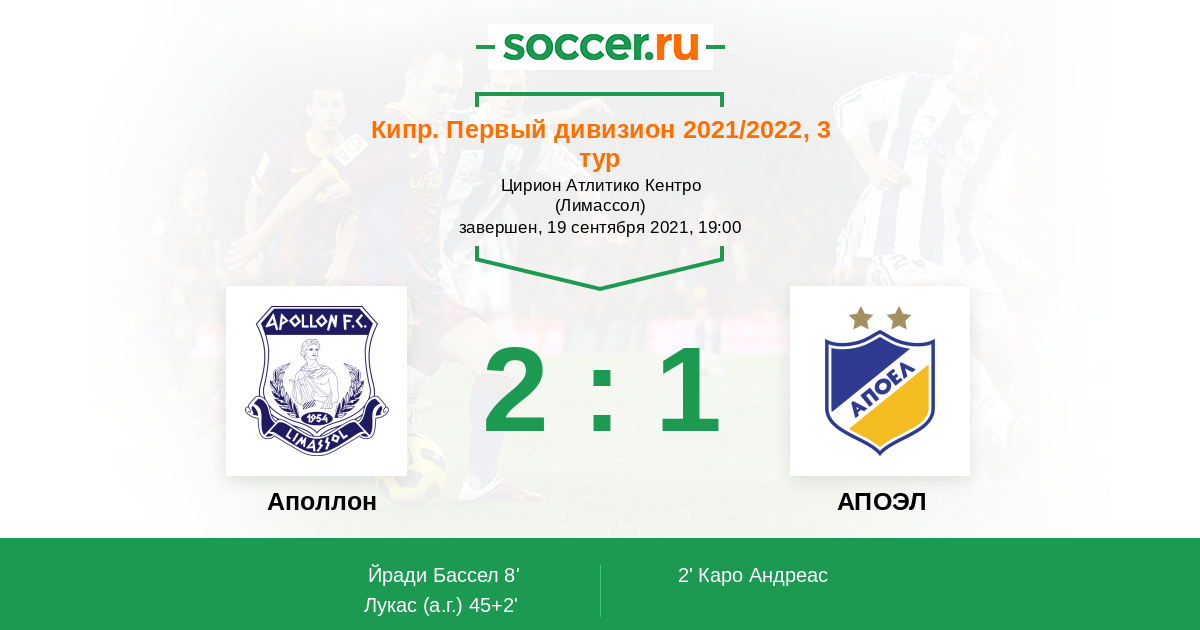 Протокол матча Аполлон против АПОЭЛ