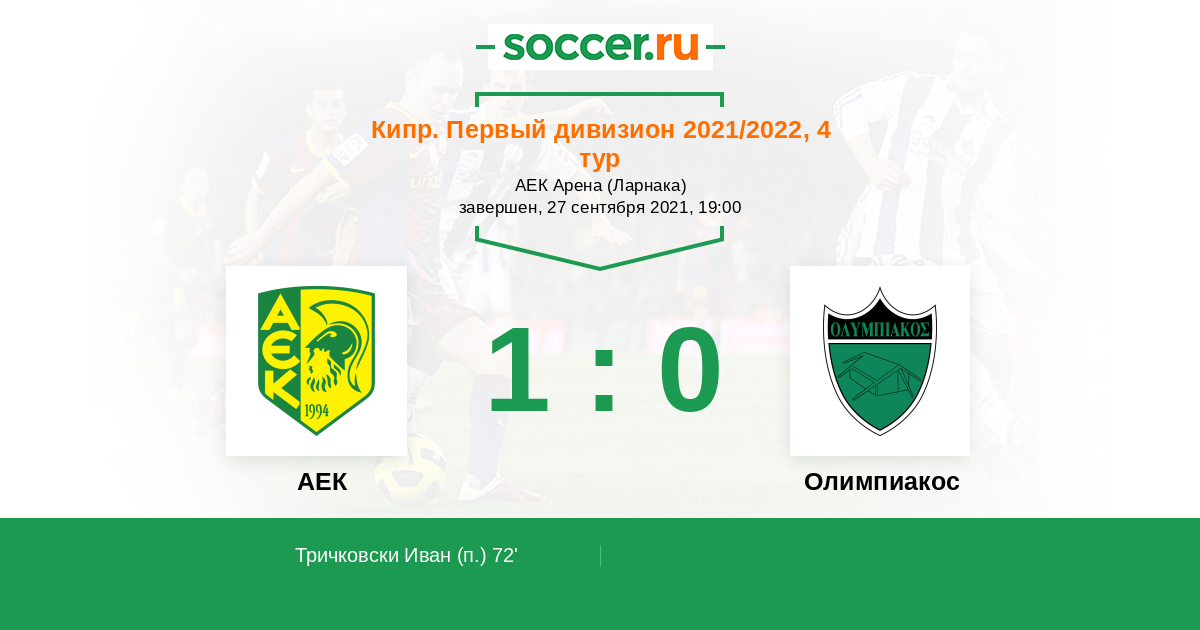 Протокол матча АЕК против Олимпиакос