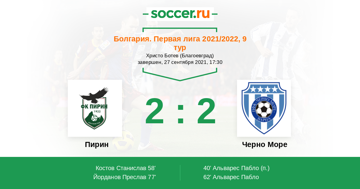 Протокол матча Пирин против Черно Море