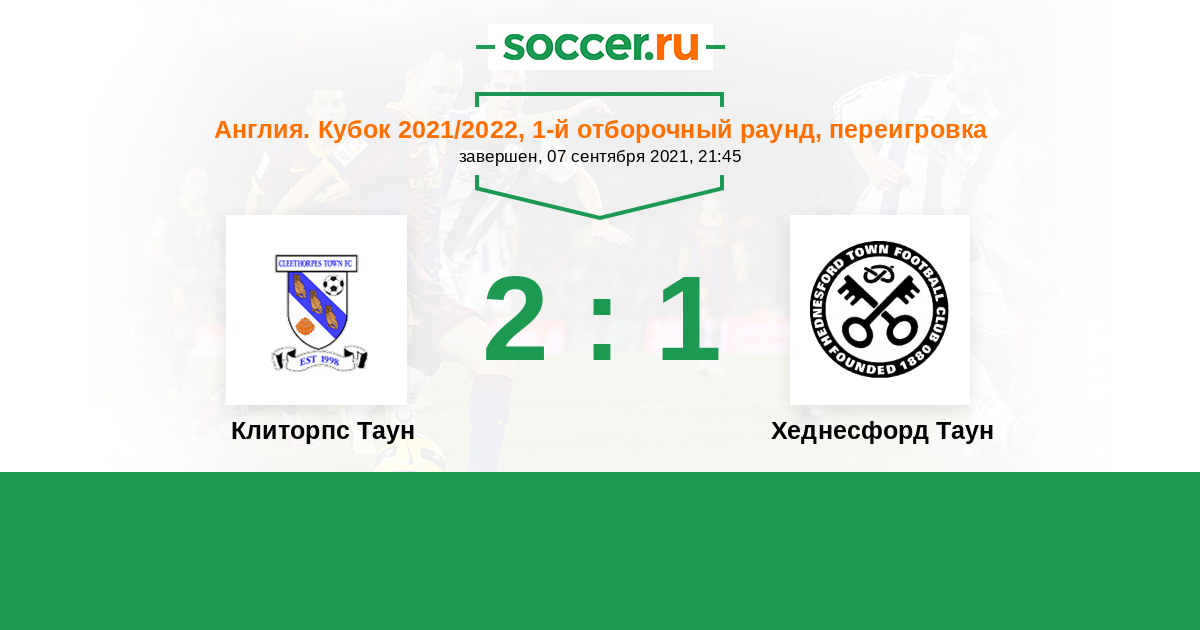 Англия. Кубок 04.09.2021 Хеднесфорд Таун Логотип футбольный клуб Хеднесфорд Таун 1:1 Логотип футбольный клуб Клиторпс Таун Клиторпс Таун