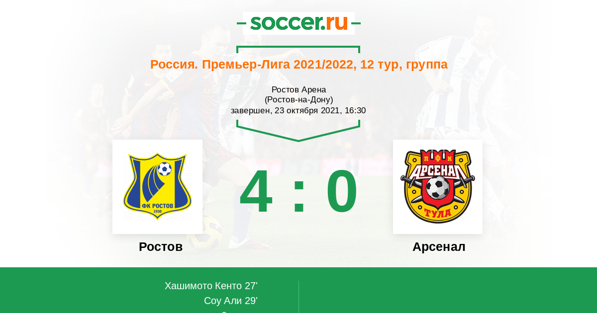 Протокол матча Ростов против Арсенал