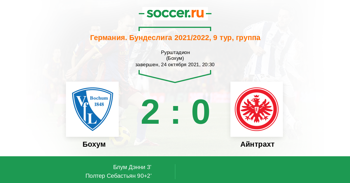 Протокол матча Бохум против Айнтрахт