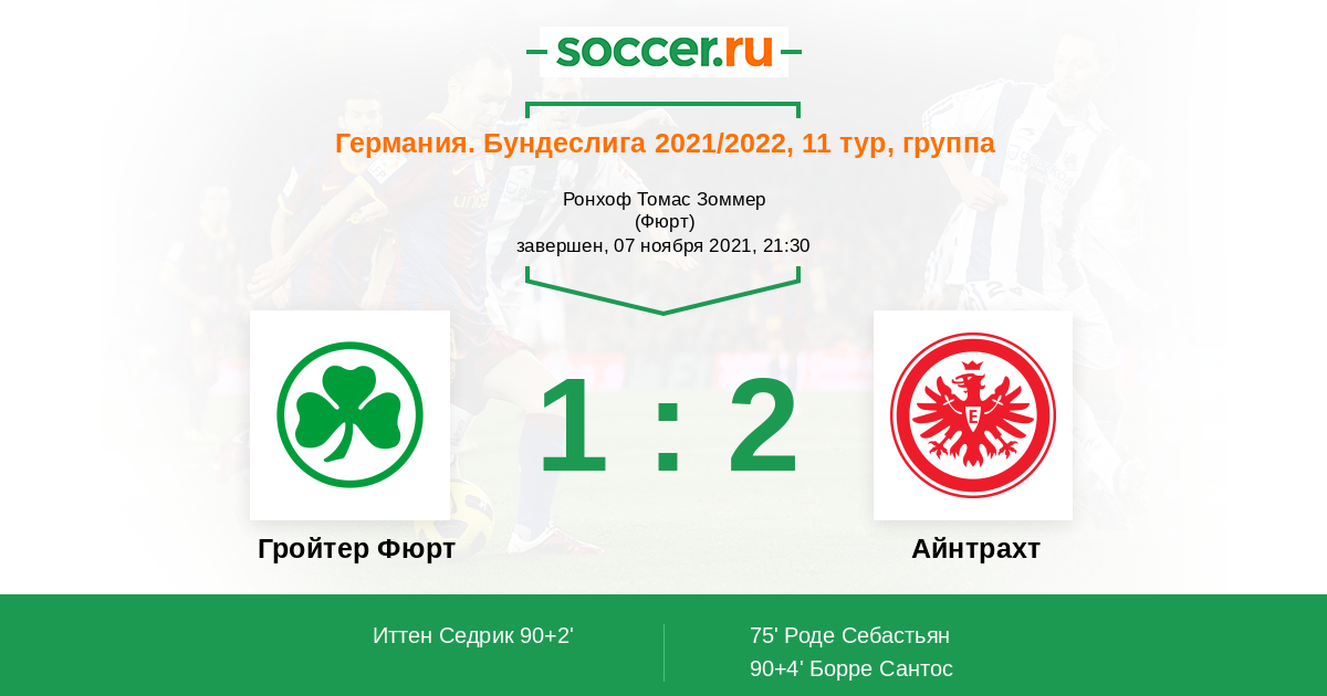 Протокол матча Гройтер Фюрт против Айнтрахт