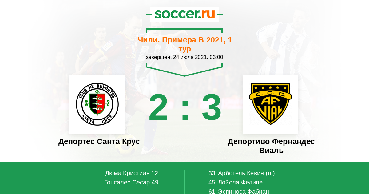 Протокол матча Депортес Санта Крус против Депортиво Фернандес Виаль