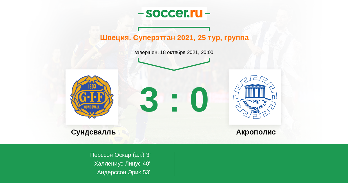 40' (2:0) Халлениус Линус (9) (Энгблом Понтус (21))