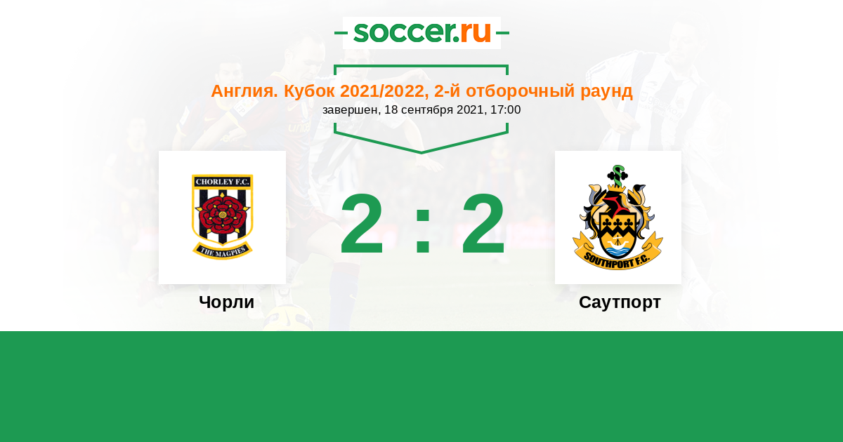 Англия. Кубок 21.09.2021 Саутпорт Логотип футбольный клуб Саутпорт 1:0 Логотип футбольный клуб Чорли Чорли