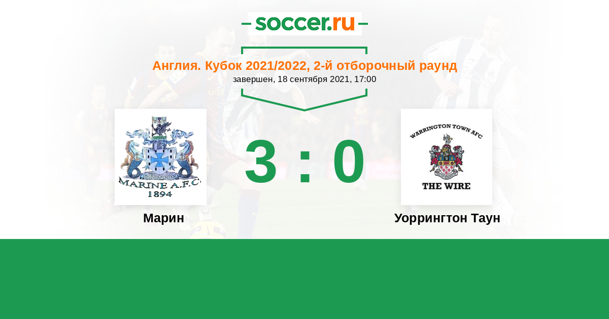 Англия. Истмийский дивизион 15.09.2018 Уоррингтон Таун Логотип футбольный клуб Уоррингтон Таун (Латчфорд) 1:0 Логотип футбольный клуб Марин (Кросби) Марин