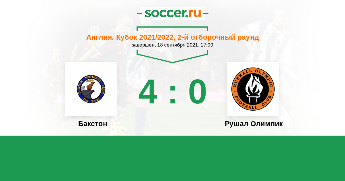 Англия. Истмийский дивизион 31.10.2017 Бакстон Логотип Бакстон 1:2 Логотип Рушал Олимпик Рушал Олимпик
