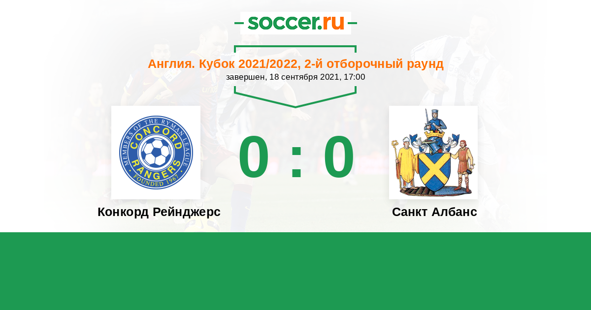 Англия. Кубок 21.09.2021 Санкт Албанс Логотип футбольный клуб Санкт Албанс 2:0 Логотип футбольный клуб Конкорд Рейнджерс (Кэнви Айлэнд) Конкорд Рейнджерс