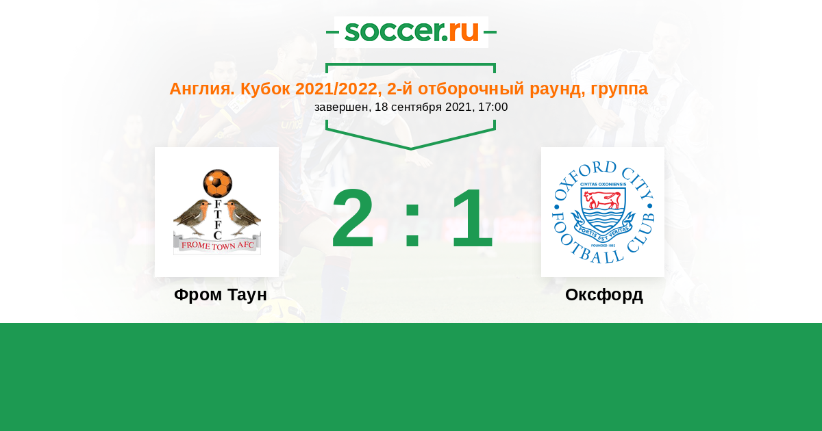 Англия. Истмийский дивизион 13.09.2011 Оксфорд Логотип футбольный клуб Оксфорд 2:0 Логотип Фром Таун Фром Таун