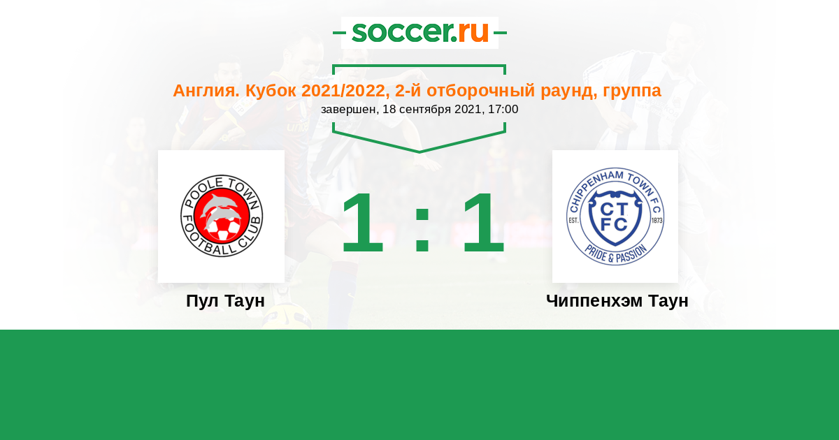 Англия. Кубок 21.09.2021 Чиппенхэм Таун Логотип футбольный клуб Чиппенхэм Таун 1:0 Логотип футбольный клуб Пул Таун Пул Таун