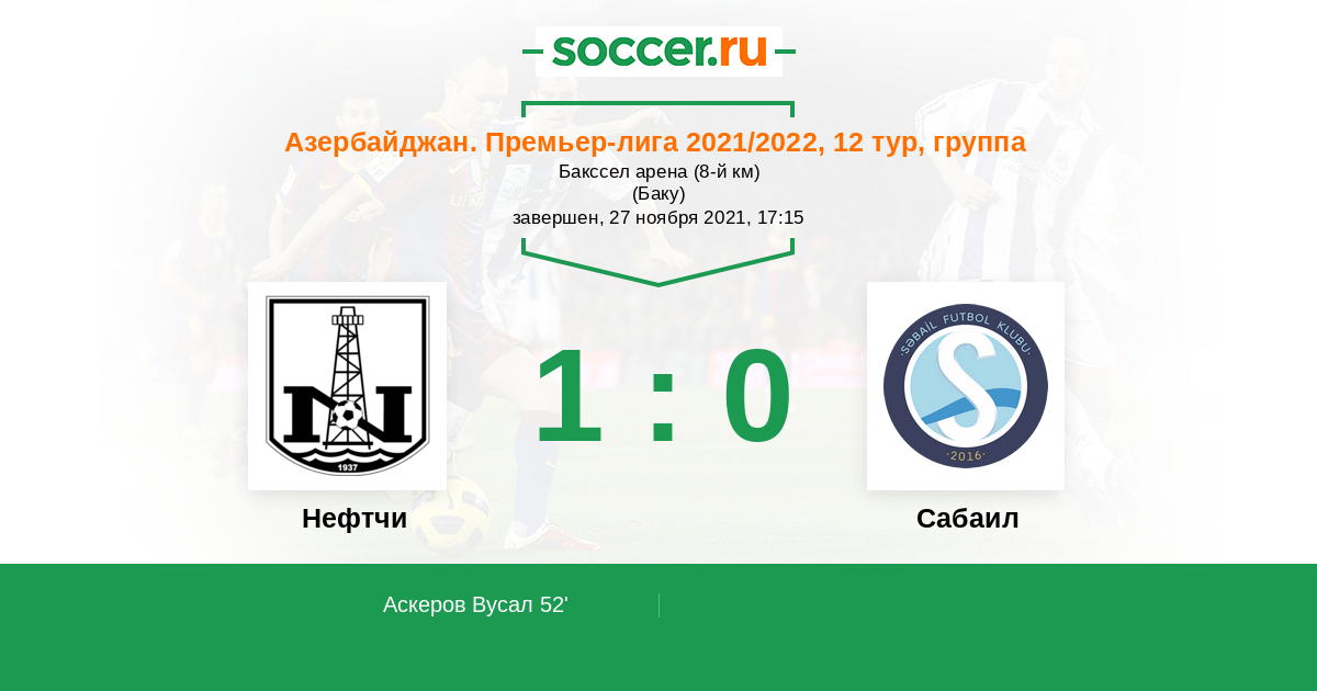 Протокол матча Нефтчи против Сабаил