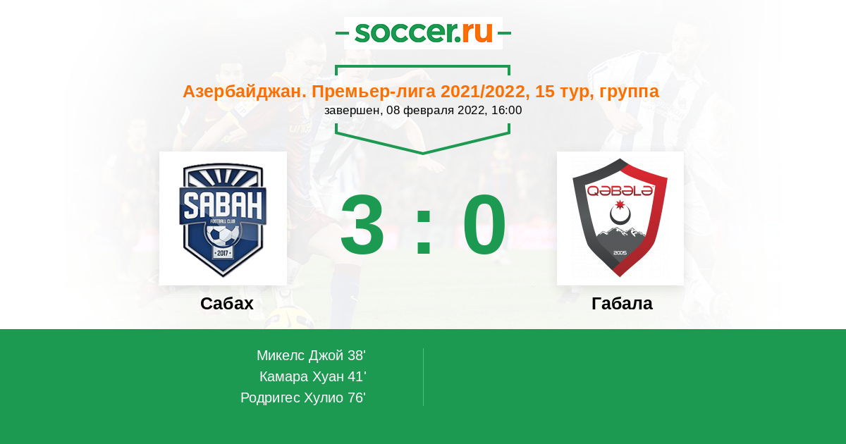 Протокол матча Сабах против Габала