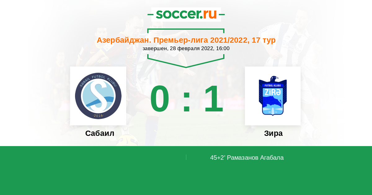 Протокол матча Сабаил против Зира
