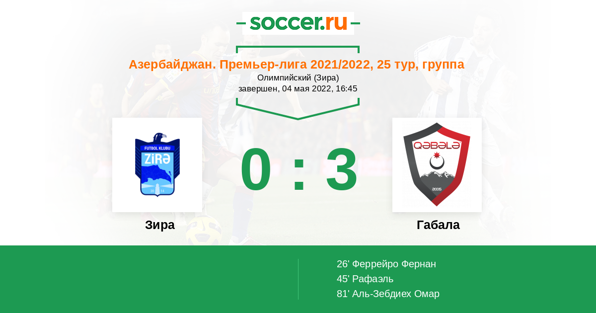 Протокол матча Зира против Габала