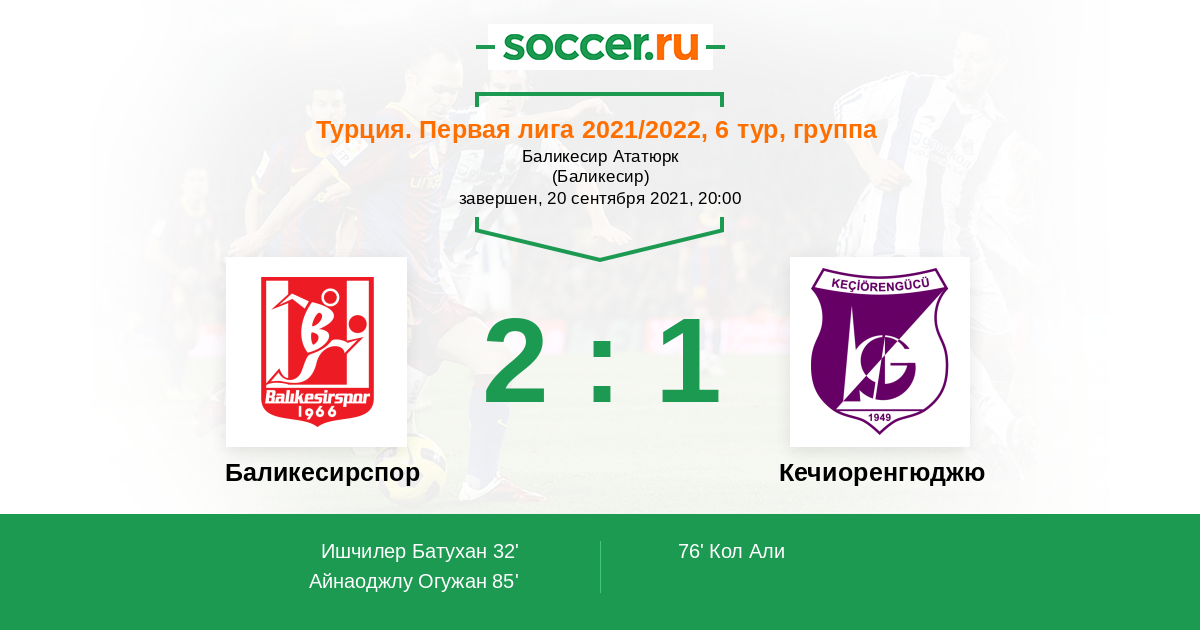 Протокол матча Баликесирспор против Кечиоренгюджю