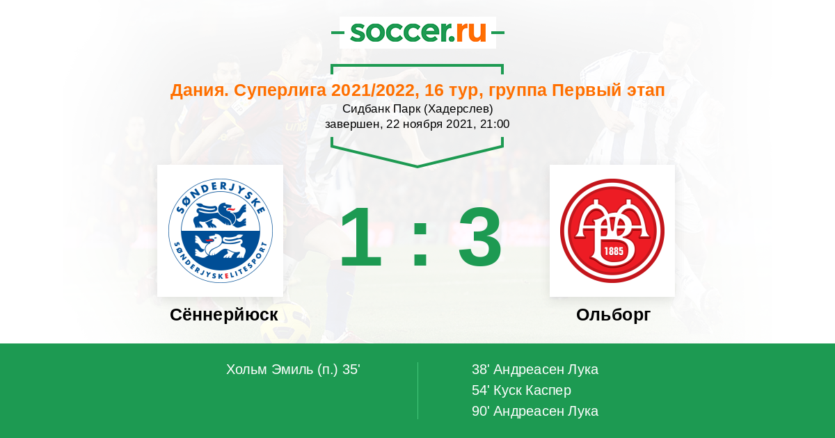 54' (1:2) Куск Каспер (17) (Андреасен Лука (18))