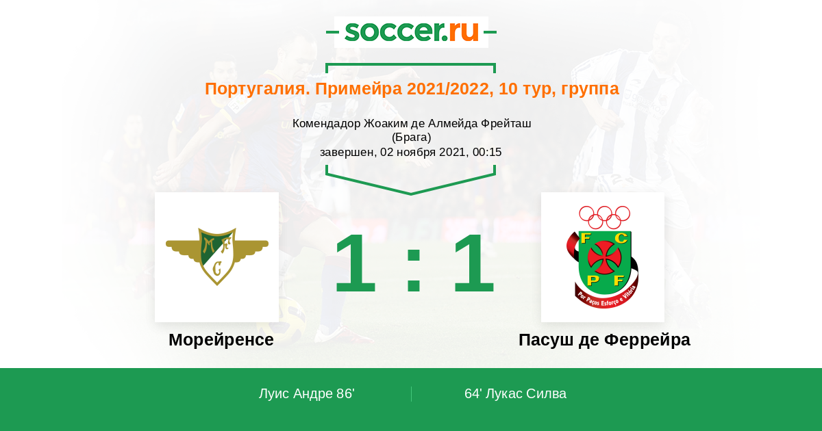 Протокол матча Морейренcе против Пасуш де Феррейра