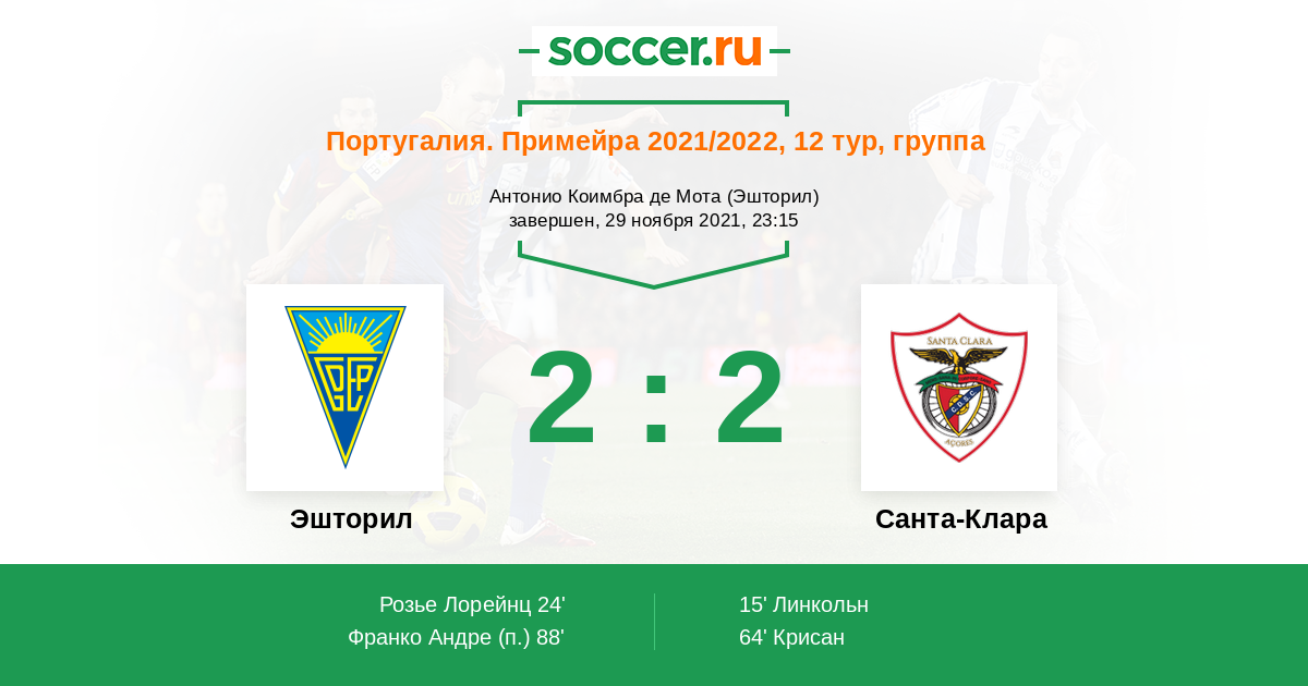 Протокол матча Эшторил против Санта-Клара