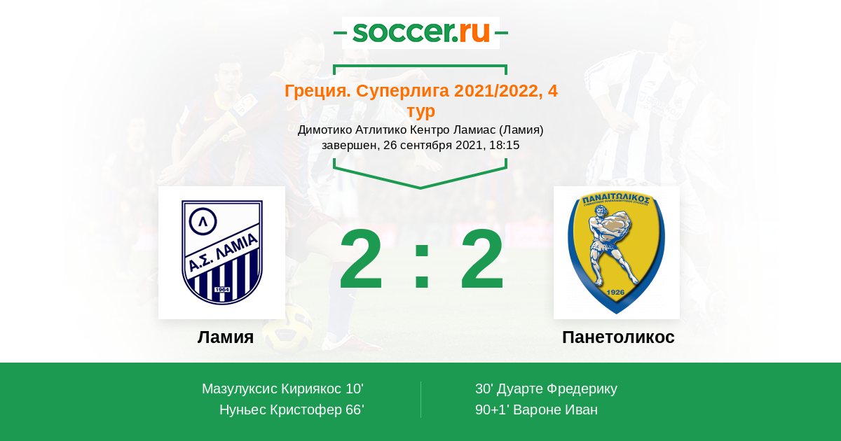 66' (2:1) Нуньес Кристофер (7) (Манусос Георгиос (9))