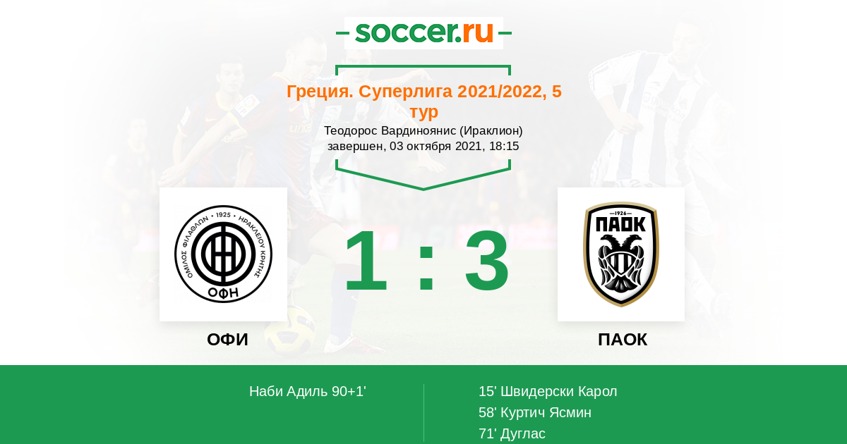 Протокол матча ОФИ против ПАОК