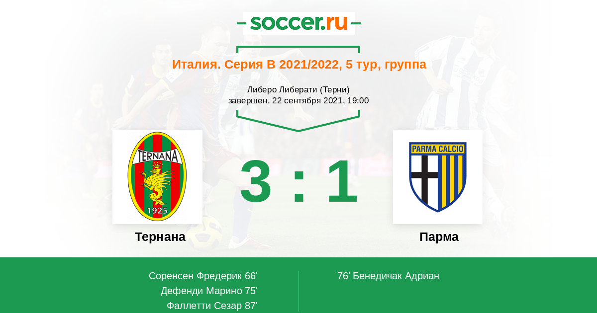 Протокол матча Тернана против Парма