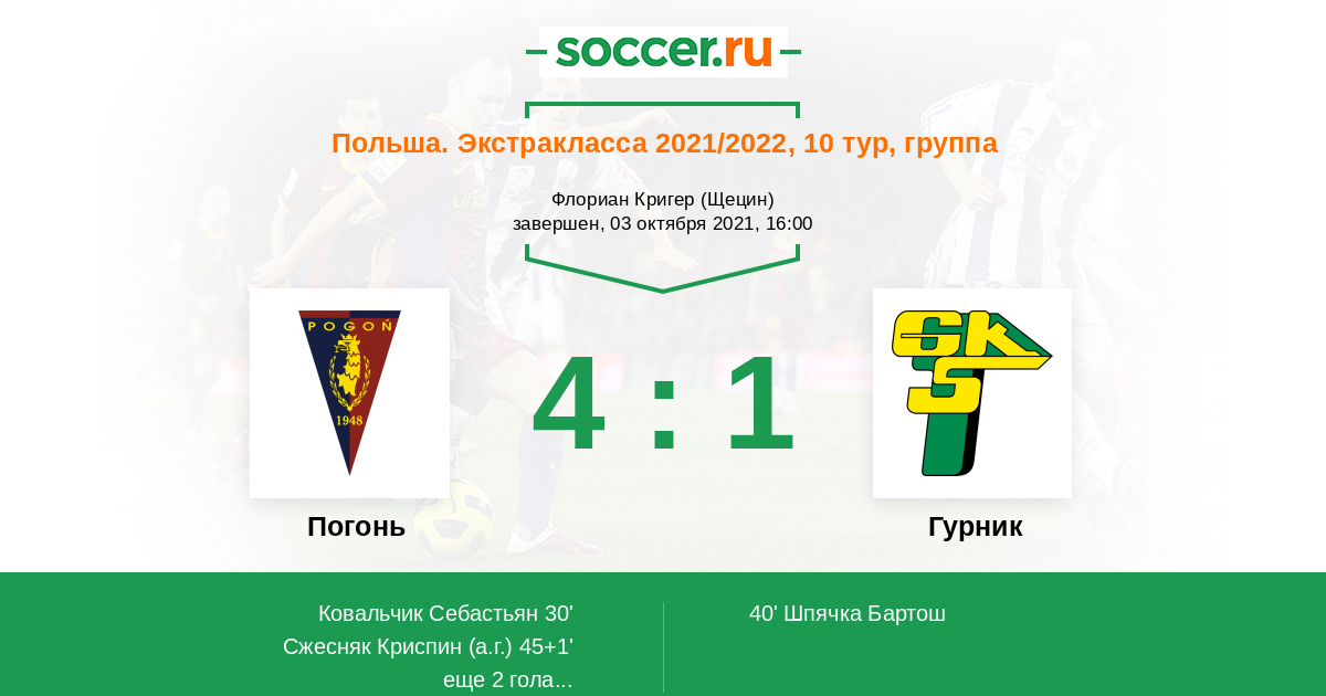 Протокол матча Погонь против Гурник