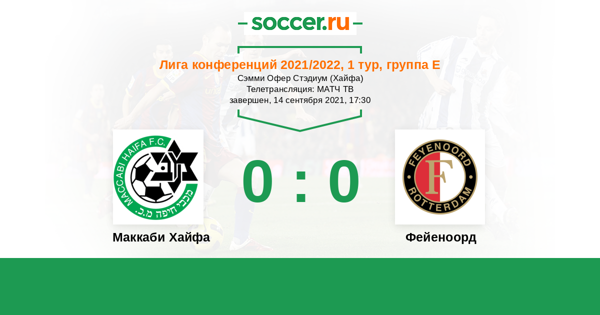 Протокол матча Маккаби Хайфа против Фейеноорд