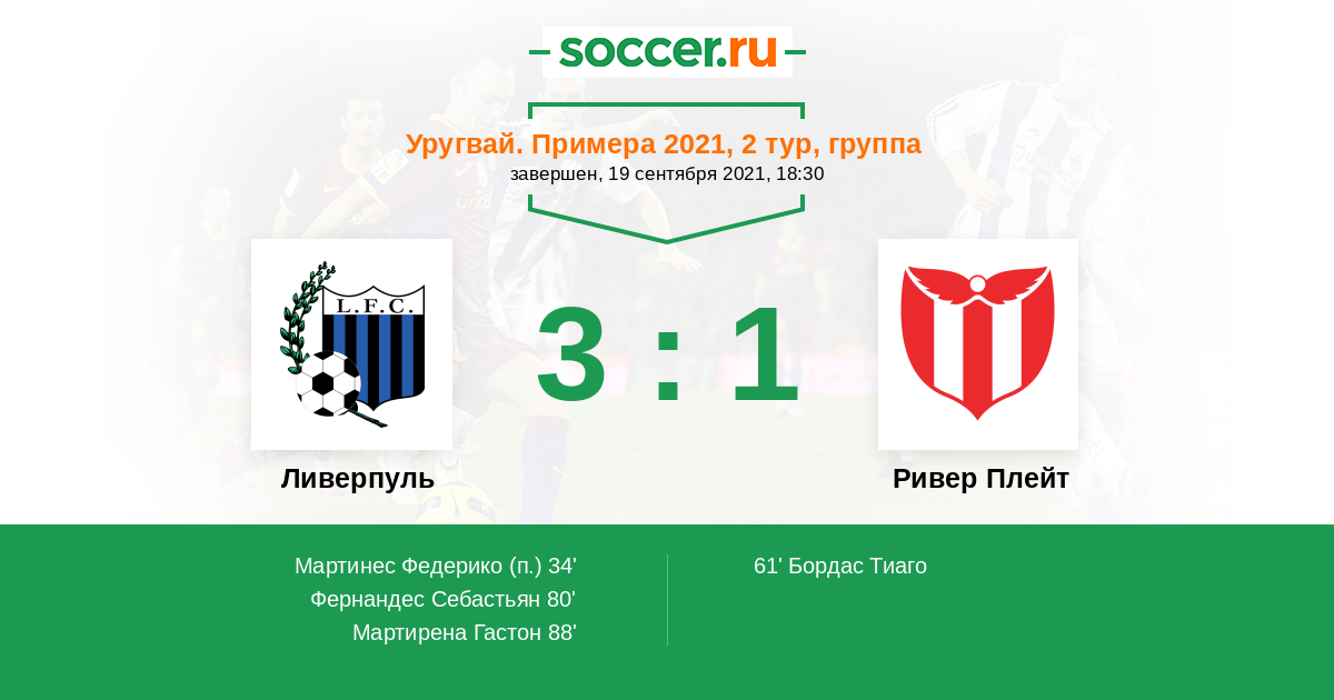 Протокол матча Ливерпуль против Ривер Плейт