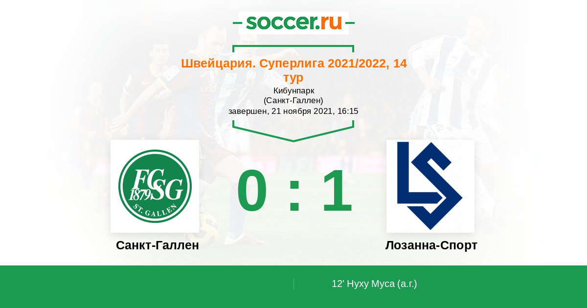 Протокол матча Санкт-Галлен против Лозанна-Спорт