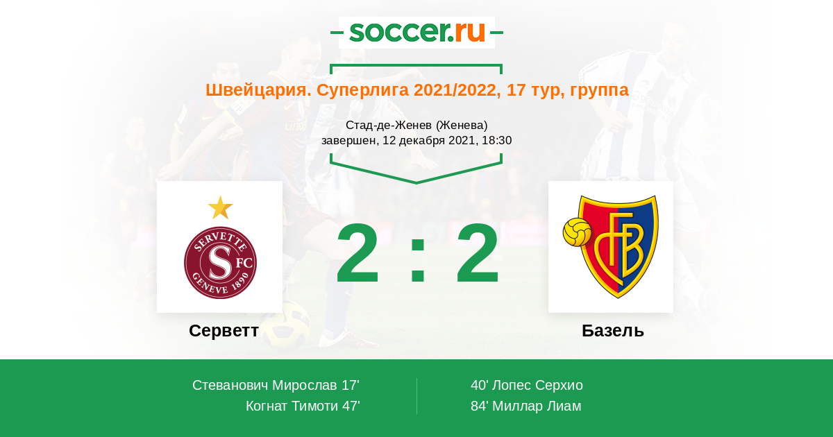 Протокол матча Серветт против Базель