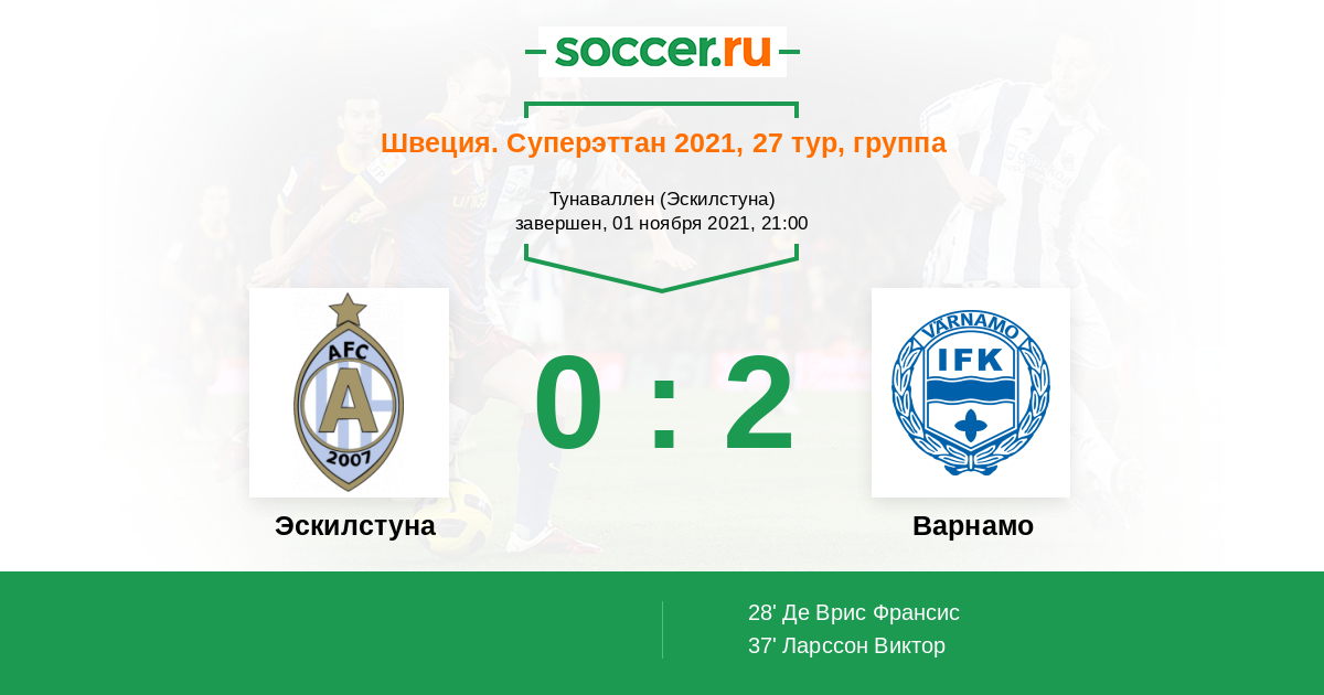 Протокол матча Эскилстуна против Варнамо