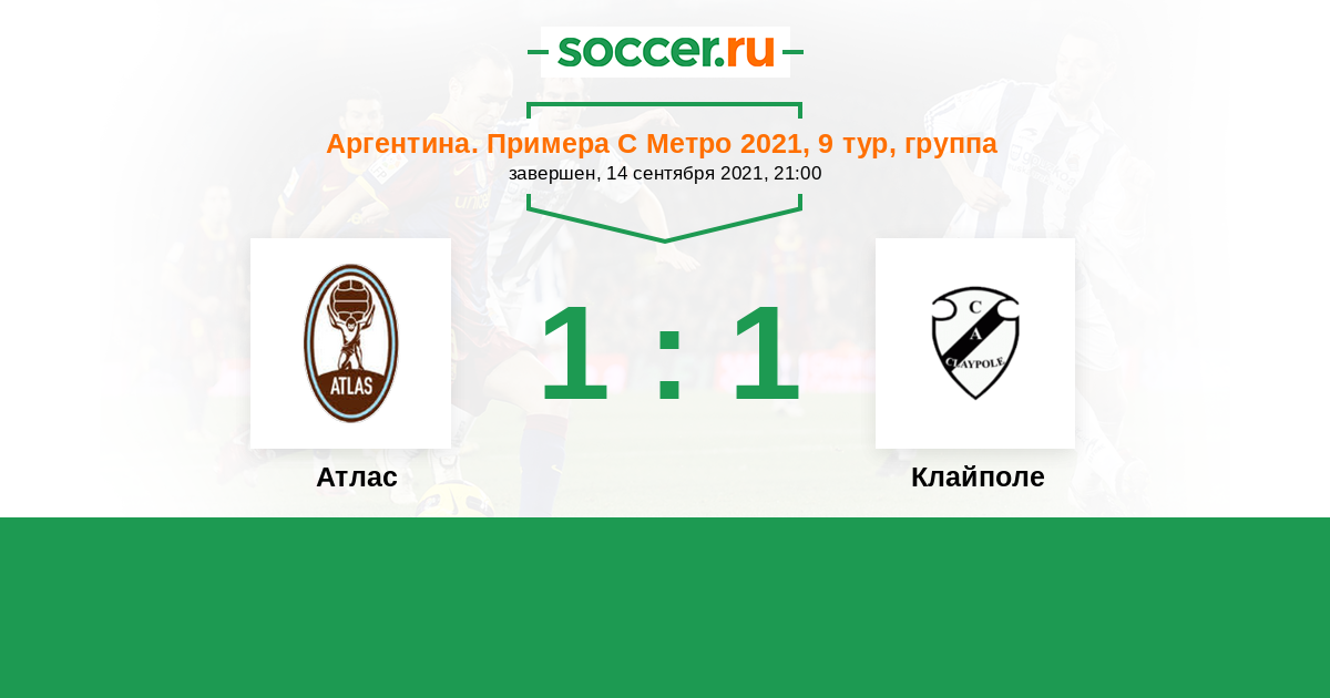 Аргентина. Примера С Метро 25.04.2021 Клайполе Логотип футбольный клуб Клайполе 1:1 Логотип футбольный клуб Атлас (Хенераль Родригес) Атлас
